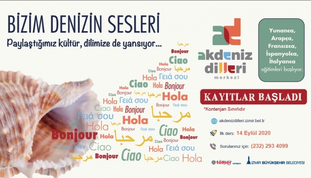 İzmir Büyükşehir Belediyesi Akdeniz Dilleri Merkezi’nde yabancı dil kursları için kayıtlar başladı. Akdeniz Dilleri Merkezi İtalyanca, İspanyolca, Yunanca, Arapça ve Fransızca olmak üzere Akdeniz’e kıyısı bulunan ülkelerin resmi dillerinde eğitim verecek. İzmir’in liman kenti kimliğini ve zengin tarihsel birikimi kentteki insanlara yatırım yaparak öne çıkarmayı hedefleyen Büyükşehir Belediyesi, bu proje ile Akdeniz’in tüm kentleriyle İzmir arasındaki kültürel alışverişi arttırmayı ve dostluk bağlarını daha da güçlendirmeyi planlıyor.